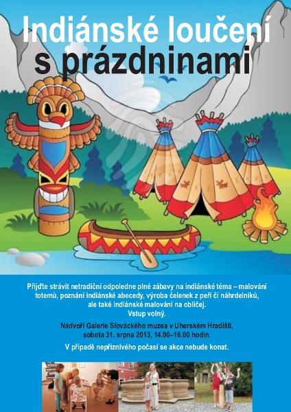 Na sobotní odpoledne 31. srpna 2013 připravilo Slovácké muzeum v Uherském Hradišti pro rodiče s dětmi již druhý ročník výjimečné akce s názvem Indiánské loučení s prázdninami, která se uskuteční na nádvoří Galerie Slováckého muzea.